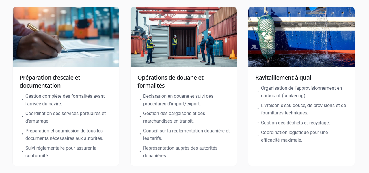 Nos services d’agence maritime et notre expertise sont orientés vers des armateurs nationaux et internationaux.